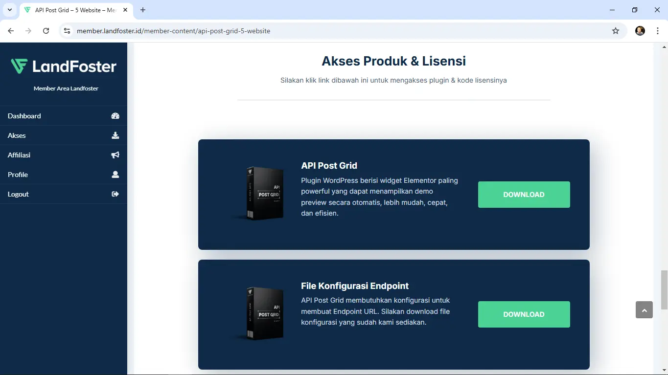Jika pembayaran Anda sudah kami konfirmasi, maka Anda wajib login ke halaman member area Landfoster untuk mengakses plugin.