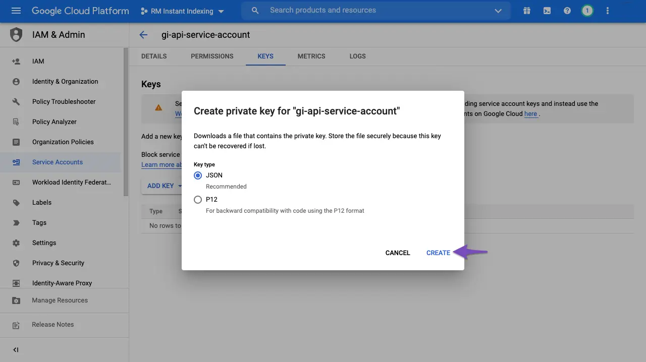 APC Google Indexing API. - Klik Create.