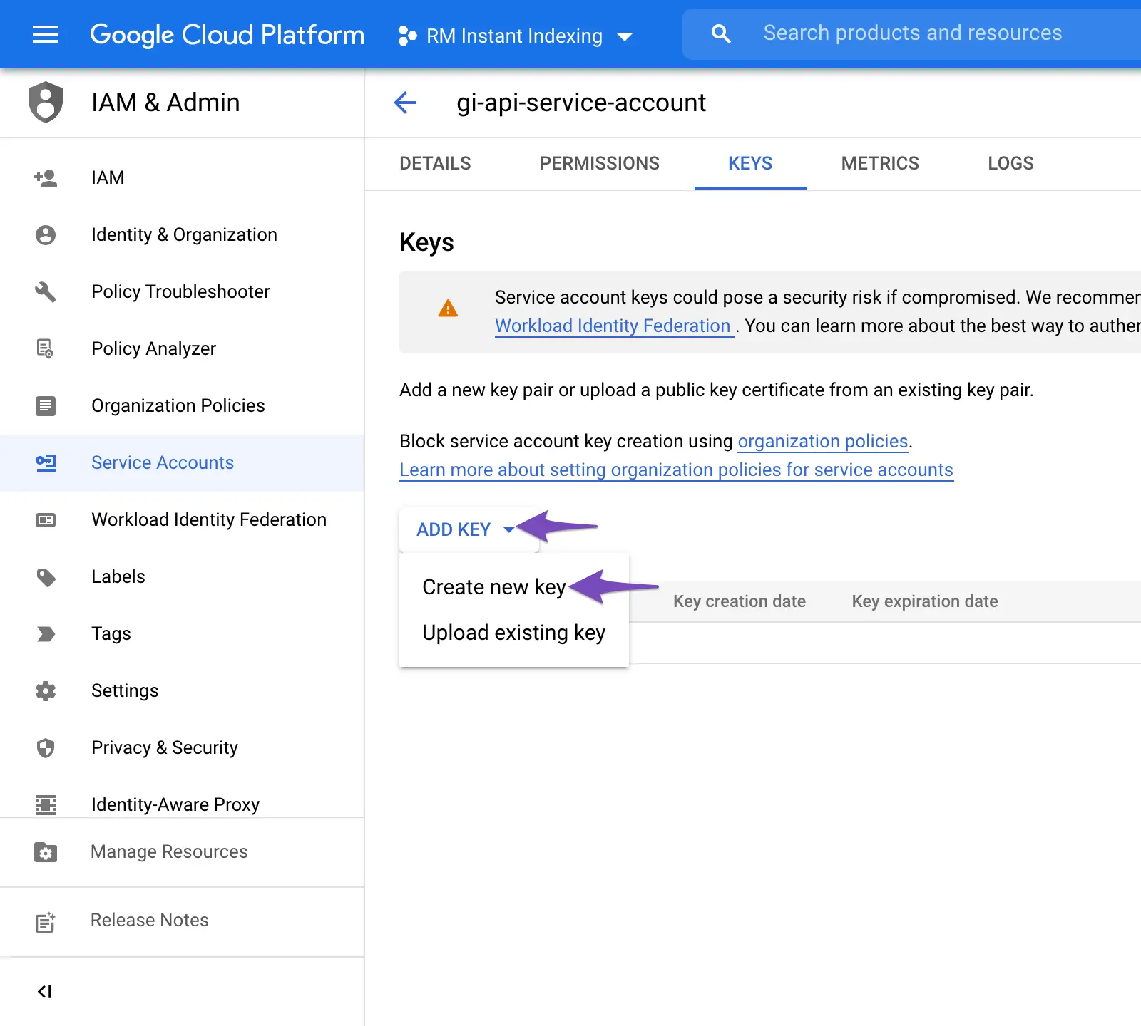 - Klik Create Service Account.