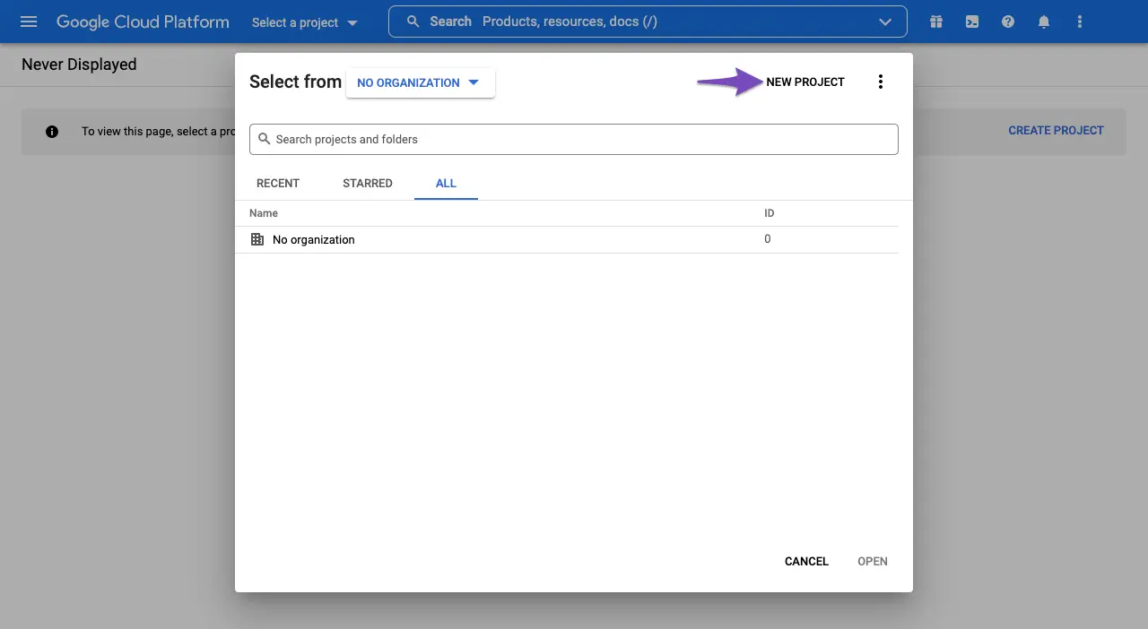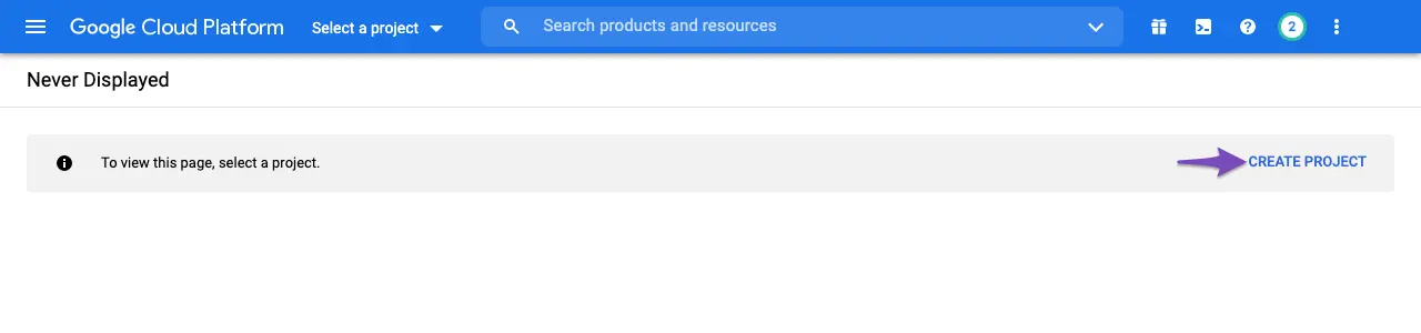 - Kembali lihat pemilih project di header Google Cloud Console.