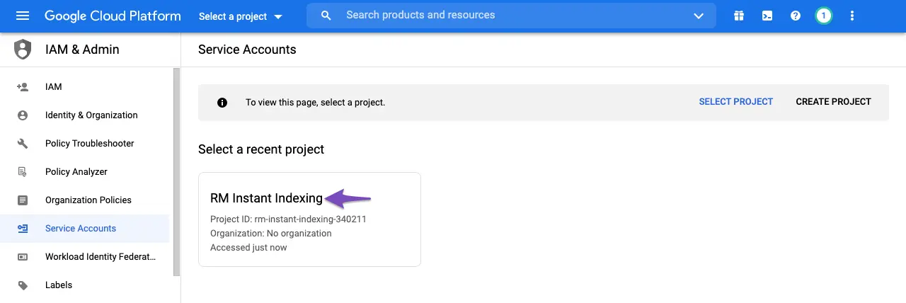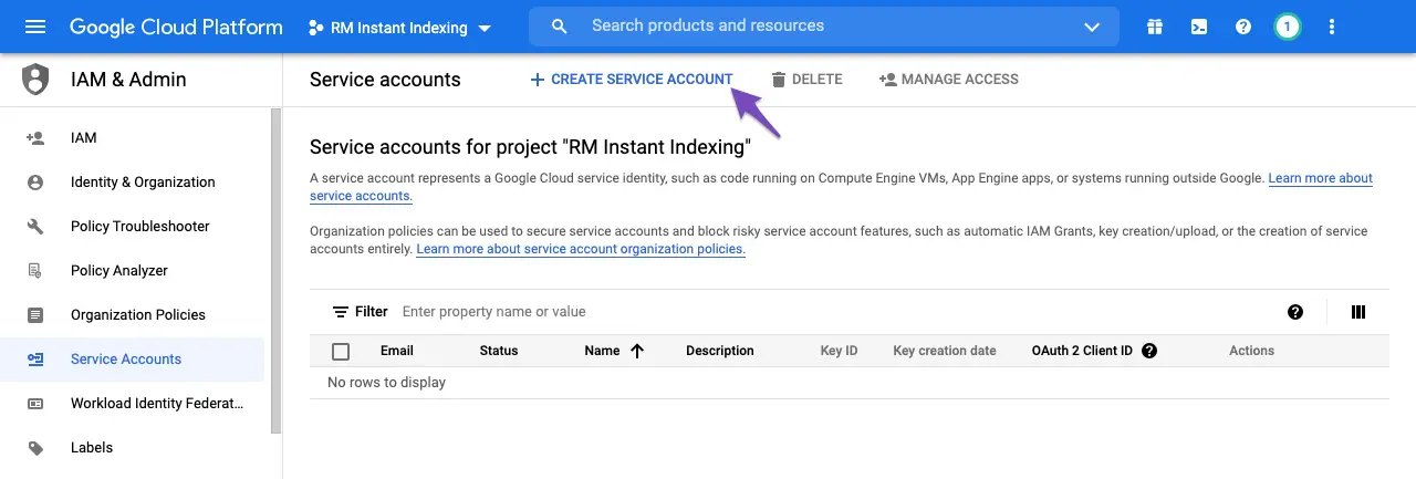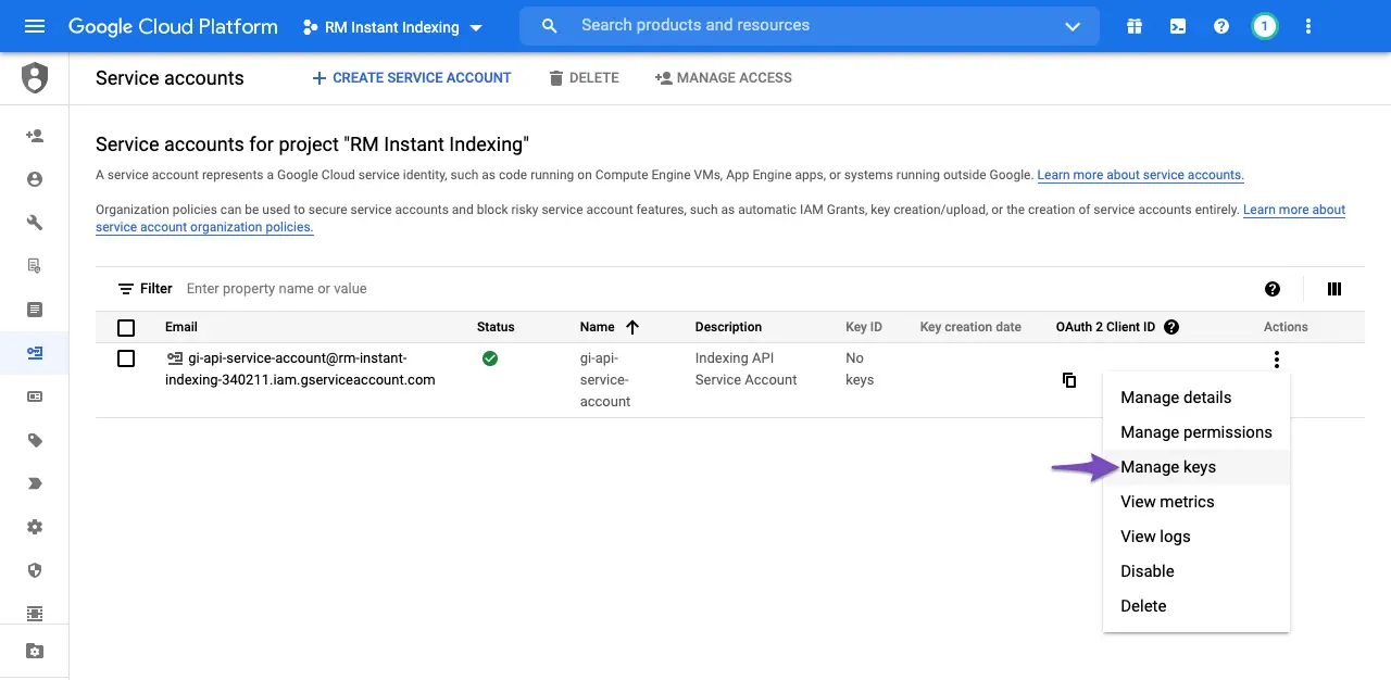 Jika berhasil, project Anda sekarang sudah punya akses ke Google Indexing API.